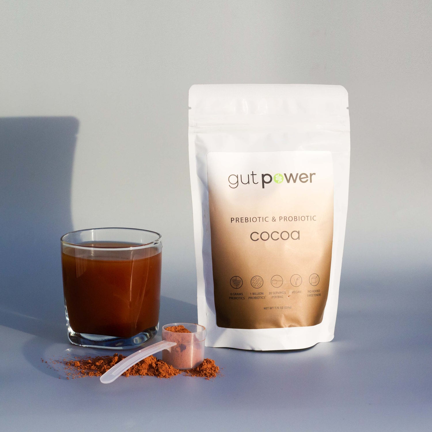 Each serving of Gut Power® Cocoa contains ~8mg of caffeine (8% of a cup of coffee).