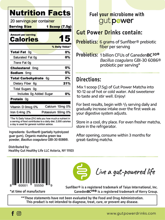 Every serving of Gut Power® contains 6 grams of Sunfiber®, a low-FODMAP prebiotic fiber. All the benefits of prebiotics without the side effects.